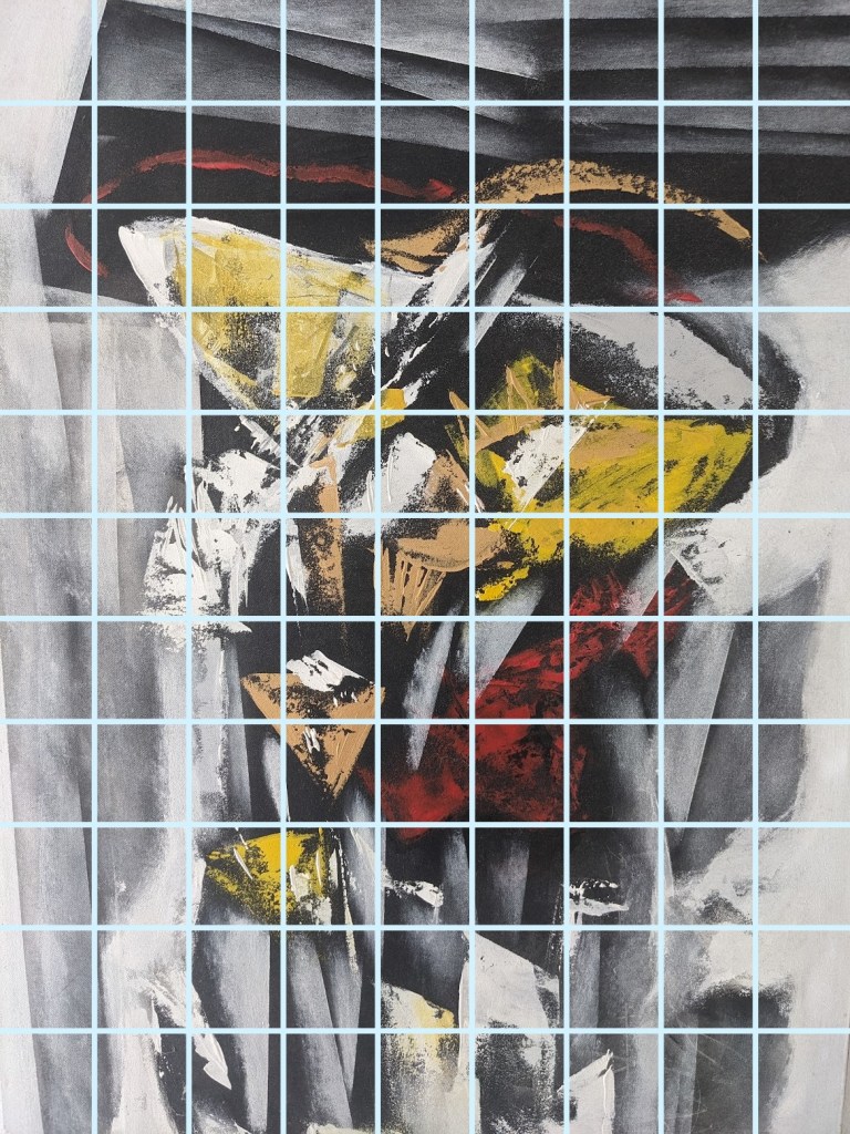 The choice to use this particular painting was a deliberate one. A person with synesthesia (let’s call them my muse, why not?) noted that at a glance, the whirling patterns almost reflect the pattern made by certain melodies and chord progressions (this painting hangs in my hallway, that’s why they told me). What was not consistent with their experience however, was the presence of multiple colours. My muse tends to visualise changing colours when they hear music, rather than all the colours of the individual pitches in a composition at once. That being said, when a singular pitch is played for them, they do experience a colour (the clarity of which is reflective of its tuning). It was for this reason that, once I realised I could utilise a major scale quite neatly with this painting, I decided to give each colour its own interval rather than each shape its own pitch. It would be interesting to see how the interpretation of this score by performers who may or may not have synestheisa manifests itself visually with my muse. I do not expect the colours will match, but I am curious if they will have a more detailed experience of the decided shape of the music.